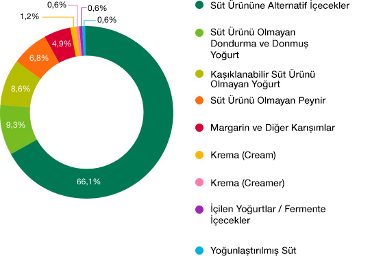 Yeni Süt Ürünü Alternatifleri takip edildiğinde yüzdeye göre alt kategori